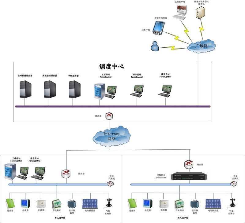 基于力控軟件平臺搭建的光伏發(fā)電監(jiān)控系統(tǒng),可實現(xiàn)監(jiān)測數(shù)據(jù),實現(xiàn)信息共享、交換、傳輸?shù)裙δ埽瑵M足用戶中心對數(shù)據(jù)的要求。