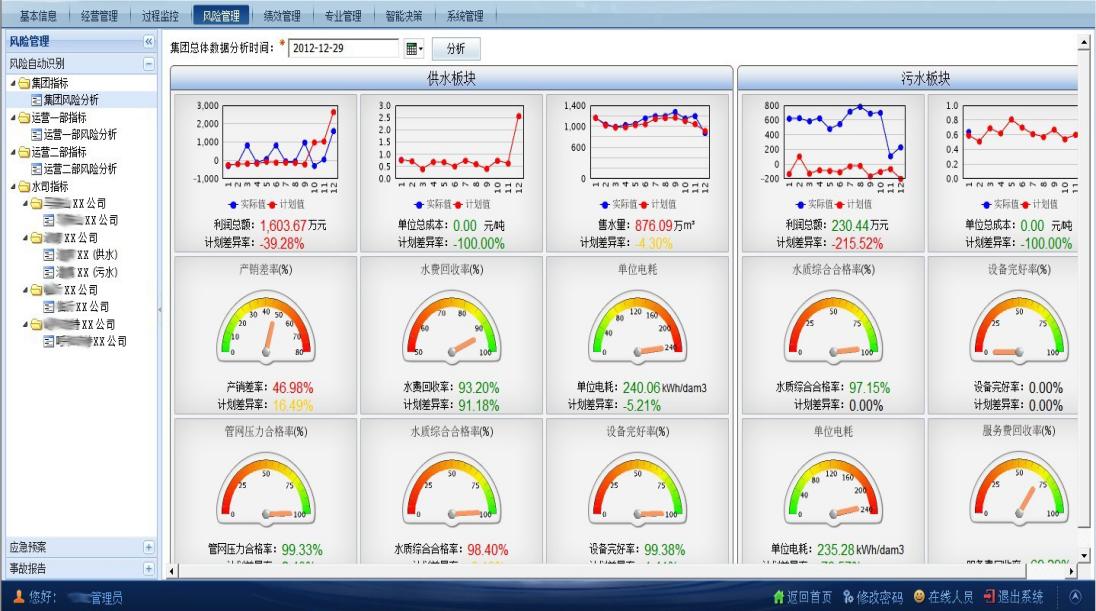 以污水處理站為核算單元,當成本臨近預算最高值時利用預警功能設計達到超預算預警的目的。以污水處理站為核算單元,當物資儲備不足時利用預警功能設計達到超預算預警的目的。以污水處理站為核算單元,當水質、水量、電路、設備運行參數異常時通過報警功能設計起到警示作用。