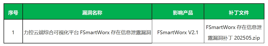 2025年5月28日,國家信息安全漏洞共享平臺(CNVD)通報了我公司產品FSmartWorx的一個漏洞。現將該漏洞信息公布如下: