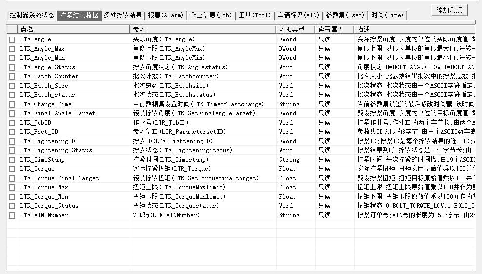 能夠采集車輛標識(VIN)、控制器信息、工具數據、參數集、作業信息、擰緊結果及報警等關鍵數據,覆蓋大部分擰緊工況,為后續擰緊質量追溯與工藝優化提供可靠的數據基礎。