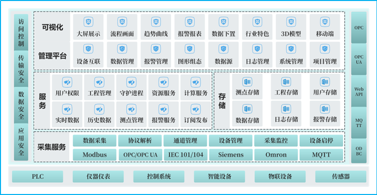 一體化集成FWebSCADA 采用采集 + 存儲 + 服務 + 平臺一體化設計。