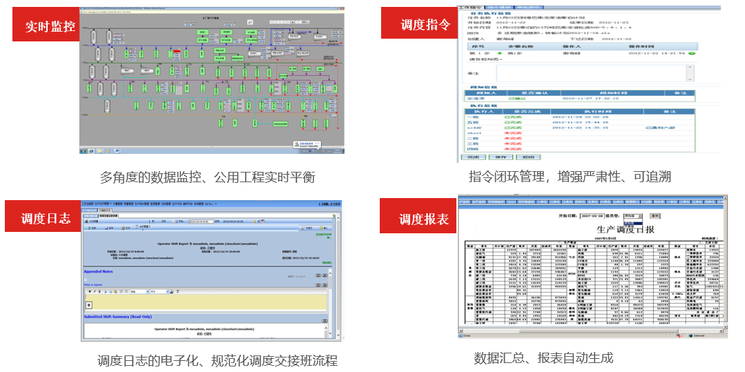 調度管理模塊提供生產調度管理的相關功能,如調度日志、調度指令、調度報表、以及生產流程監控。通過實時監控生產運行狀態、調度指令閉環管理、調度日志及調度報表,規范調度的日常工作流程,提高調度的快速響應和指揮決策能力,有效地提高調度的工作效率。