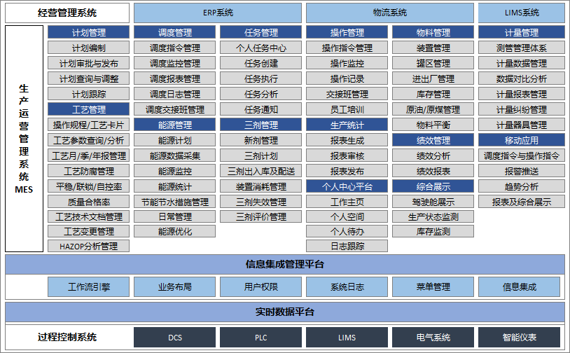 生產計劃管理模塊為業務部門提供生產計劃的創建、變更、分解、跟蹤、查詢等業務流程的管理。按照時間粒度,管理公司的年度和月度生產計劃,對計劃的完成情況進行跟蹤與反饋,從而指導企業有效生產。生產計劃管理,是對工廠的各裝置生產計劃的統一管理安排。標準功能如后續所列,主要包含計劃排程、計劃編制、計劃分解、計劃變更、計劃跟蹤、計劃查詢、滾動計劃等功能。